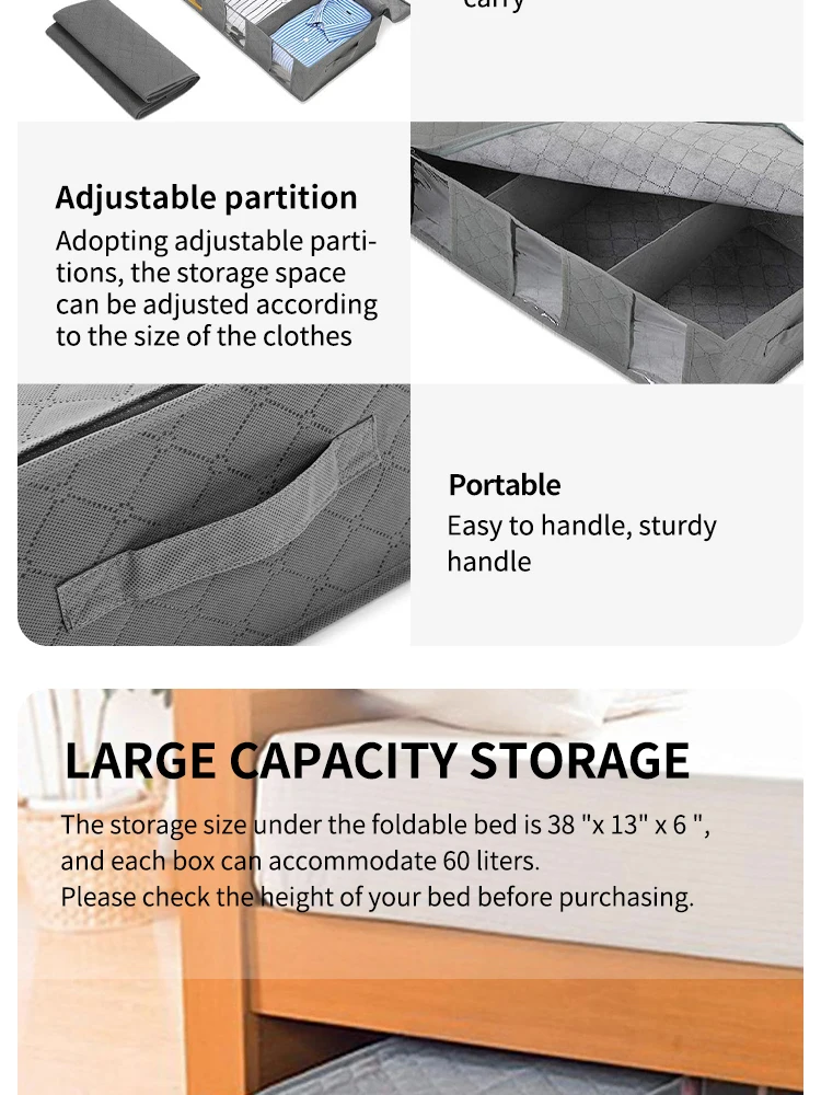 Design: can be stacked under the bed storage bag is not occupied when you can save a lot of space. Handle design is more convenient and durable, you can pull or lift