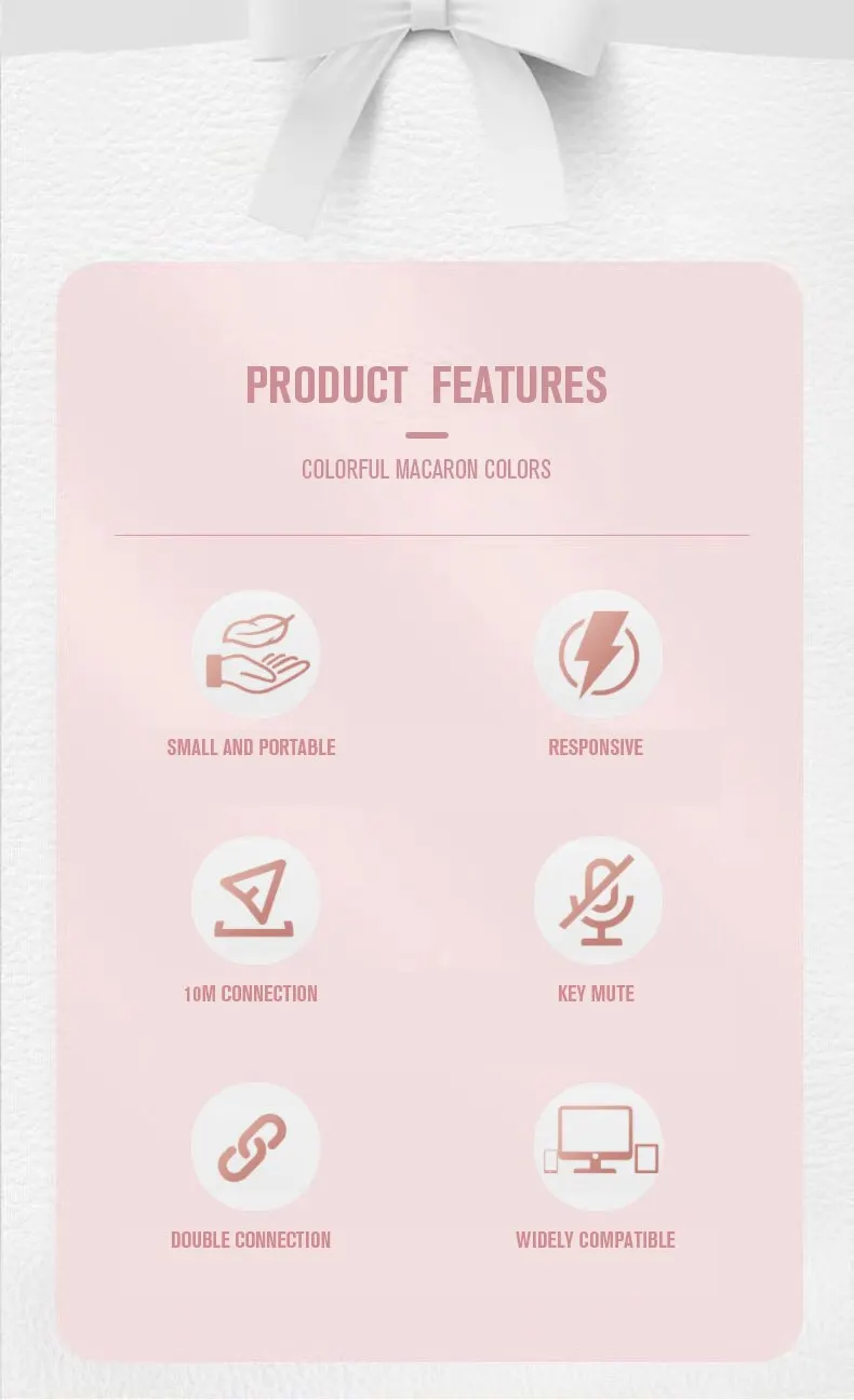 • Rechargeable Power :This macaron-themed mouse offers a rechargeable power feature, providing long-lasting usage and convenience for all-day computing needs.